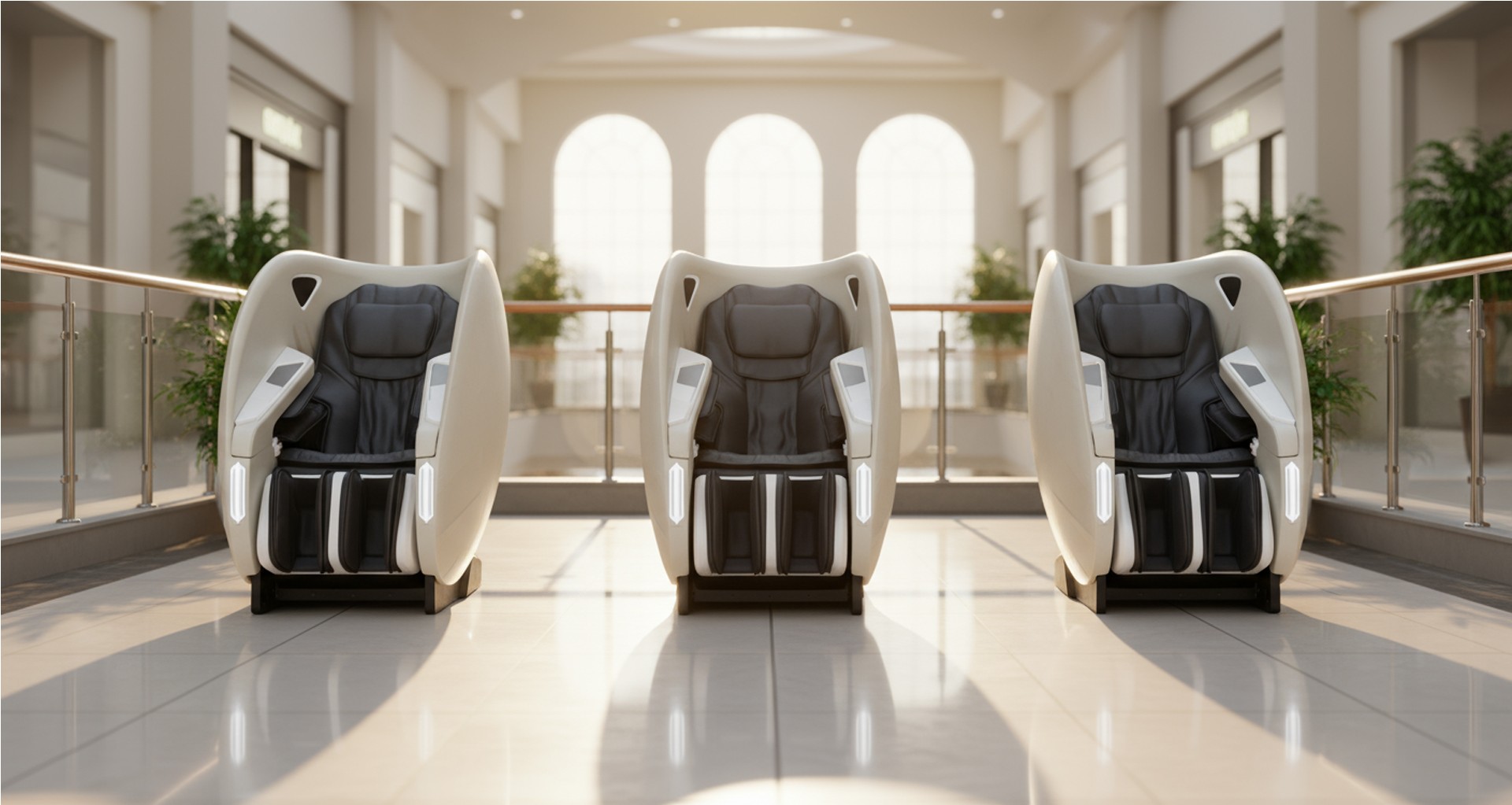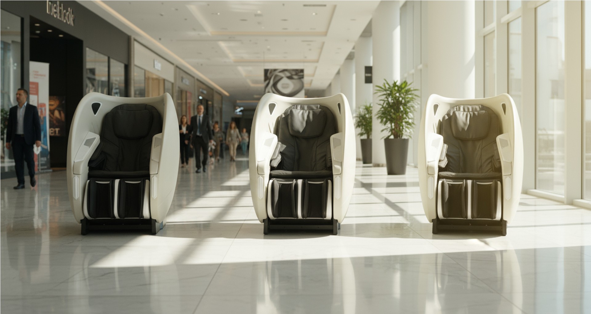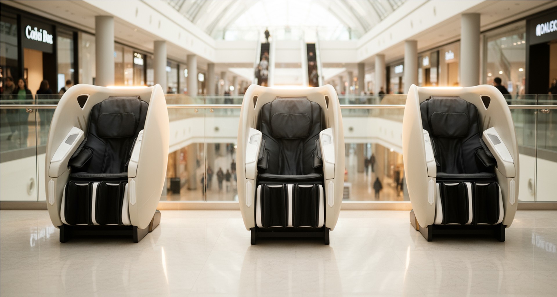 We offer the most comfortable massage chairs for shopping centers, operated via tokens, providing the perfect relaxation after a busy shopping spree. These premium-quality, modern-designed chairs not only offer a soothing experience but also add extra value to any shopping center. With their sleek and stylish appearance, our designer chairs enhance the interior of the centers while giving visitors a much-needed break.